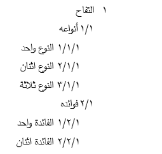 Now, how are these lists stored in ODF? Each level defines a num-prefix (what will be written before numbering), a num-suffix (same as prefix, but appended after the number), and display-levels – determining how many previous levels will be in list: